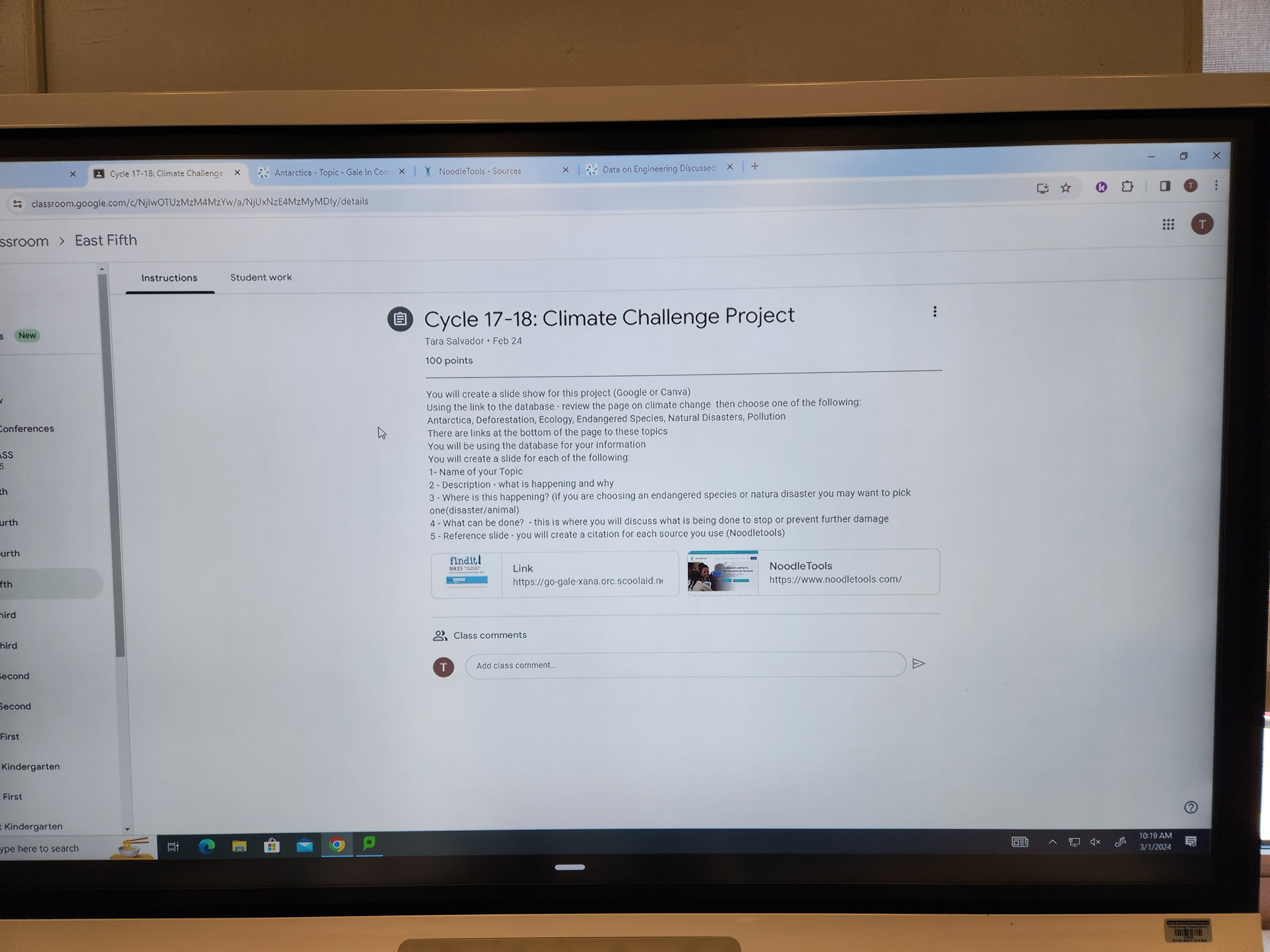 After reading, The Garden at the End of the World by Cassy Polimeni and Briony Stewart, students researched the seed bank in Svalbard Norway and created and presented the information they compiled. Recently the fifith grade started a project on a Global Issue focusing on climate change or human impact topics. They were challenged to use database resources for their information and their projects are turning out amazing!